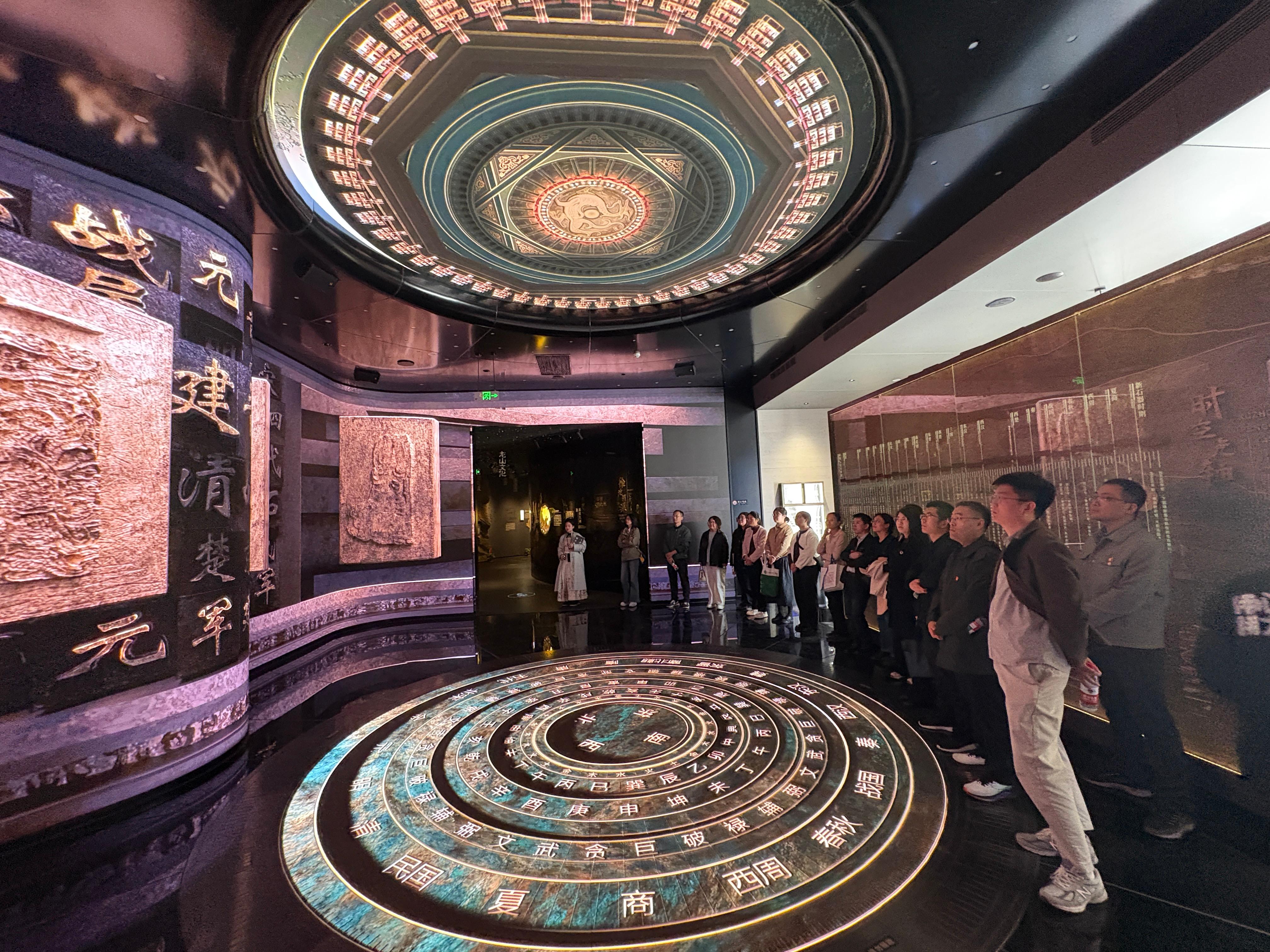 在徐州市博物馆,学员们通过“古彭千秋”“大汉气象”等主题展厅,初步了解了徐州从新石器时代至两汉时期的历史脉络。五千余件文物珍品勾勒出这座城市深厚的文化积淀,也为后续的数字体验奠定了认知基础。随后,学员们重点体验了徐州数字博物馆系列项目。这不仅是技术展示,更是一次“科技如何赋能实际工作”的现场教学:裸眼3D短片让五千年文明脉络可视化呈现,启示学员们思考如何利用视觉化手段提升工作传达效率;中轴地图与全息投影生动还原了历史场景,让大家直观感受到数字技术对复杂信息的整合与呈现能力;飞行影院《飞跃彭城》通过沉浸式体验,将历史现场“活化”,引发学员们对“如何将抽象概念转化为可感知体验”的深入思考。